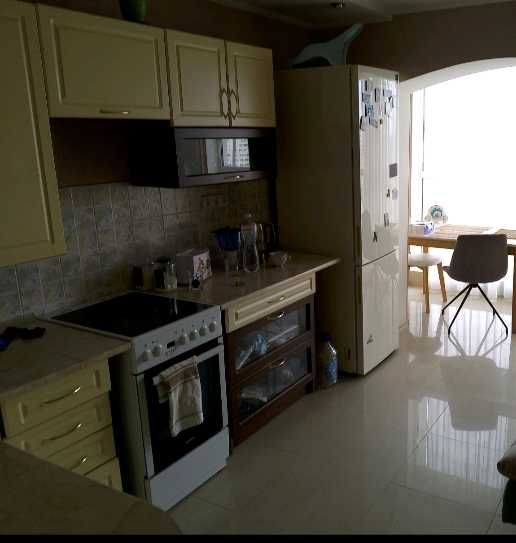 Квартира имеет хорошее жилое состояние(современный ремонт)на полу ламинат и плитка,отличная двухспальная кровать,TV, на просторной кухне витражные окна, которые выходят на западную сторону где не застроеное поле и открывается вид на красивые закаты.