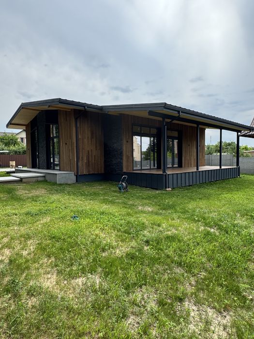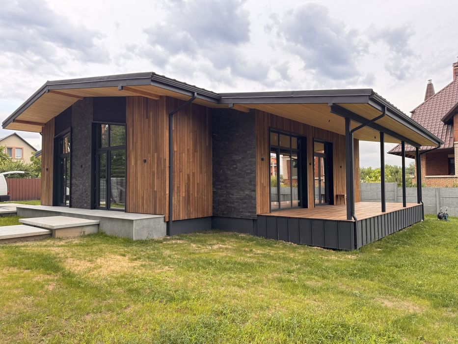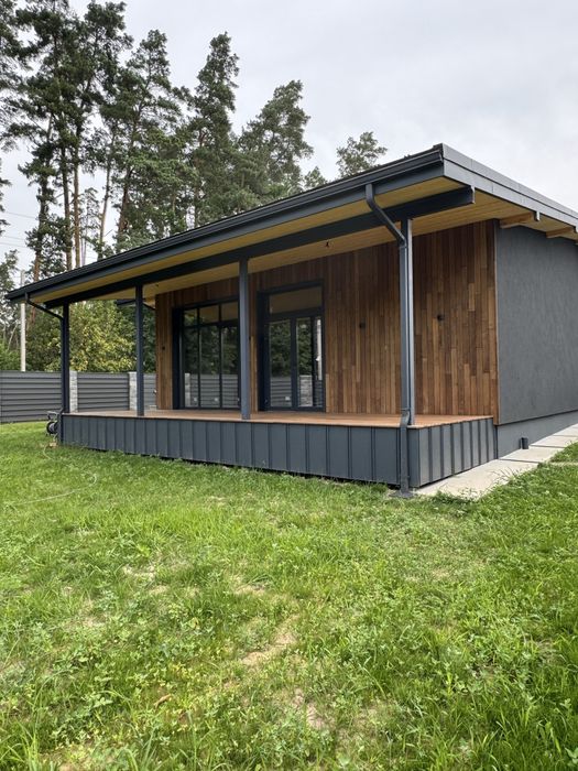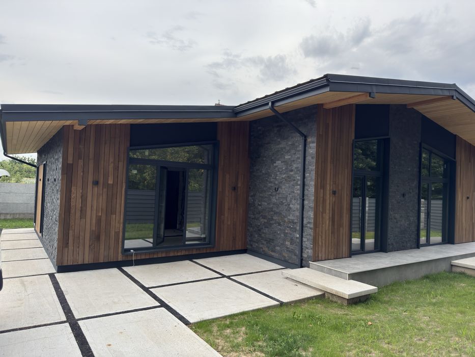 Світлий і просторий одноповерховий будинок у скандинавському стилі, збудований у 2025 році. Знаходиться в тихому місці біля лісу (перша лінія), всього 20 км від м. Житомирська (Київ).