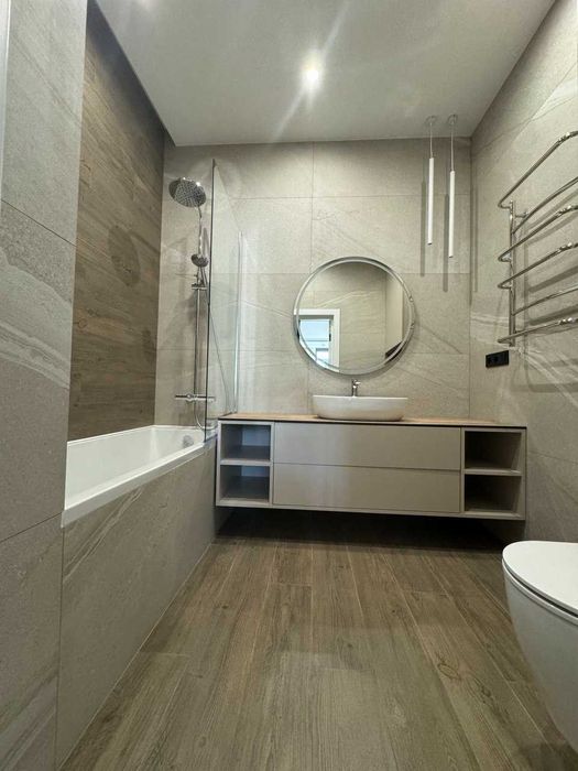 Дизайнерський ремонт із якісних матеріалів, використано техніку відомих виробників.