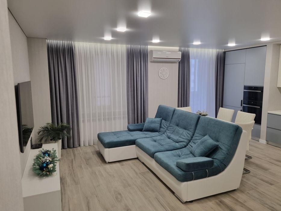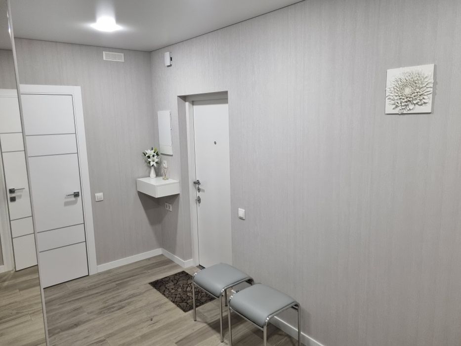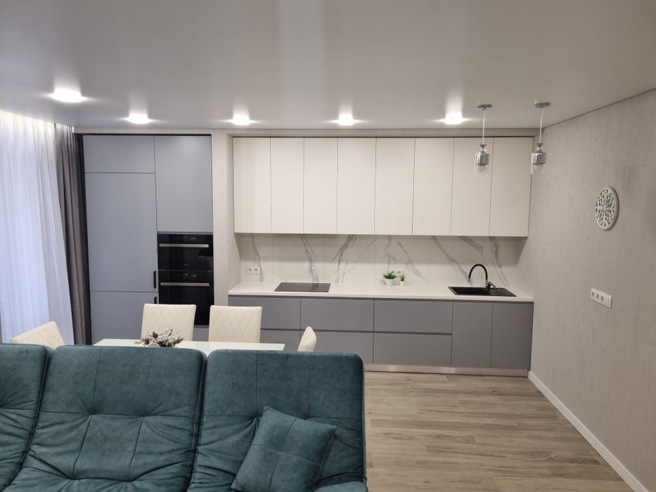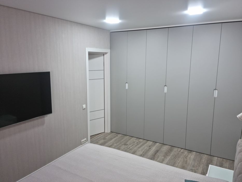 Київський; ЖК "Меридиан" 64,4 м.кв.; Квартира кухня-студія та спальня, просторий санвузол, кладовка з бойлером та пральною машиною. Лічильники води, лічильник на опалення.