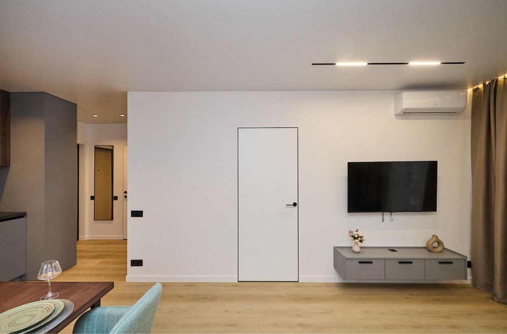 •Двері прихованого монтажу, з чорною фурнітурою;