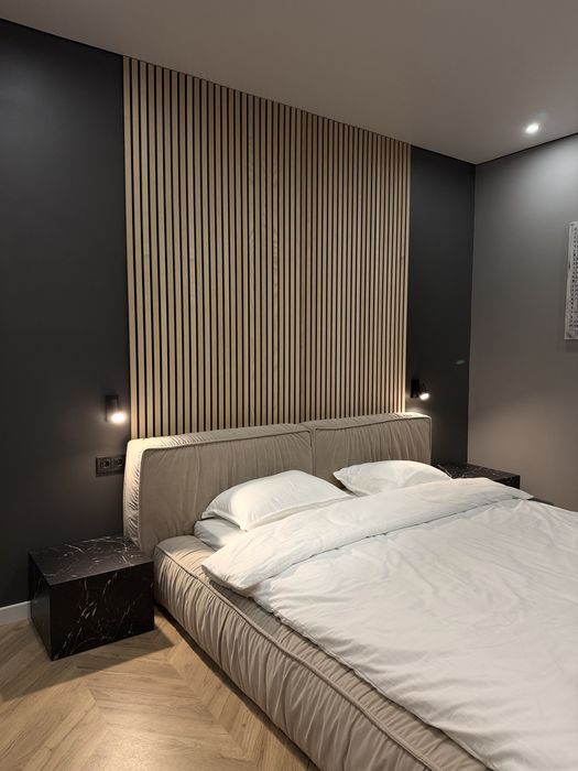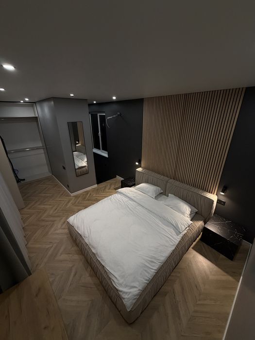 На другому поверсі окрема спальня, якісне ліжко, великий гардероб та вихід на терасу.