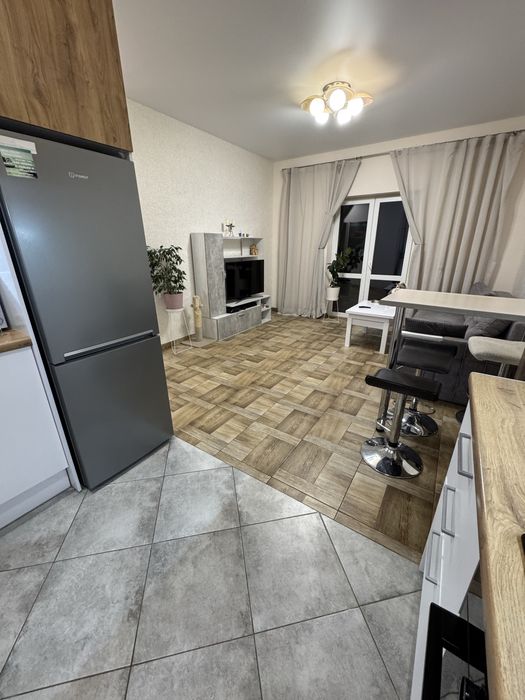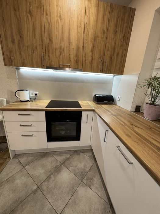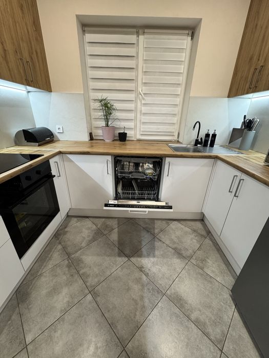 Три спальні, та кухня- вітальня, вся техніка- посудомийна машина, новий холодильник, духова шафа, індукційна варильна поверхня, мікрохвильова піч, пральна машина.