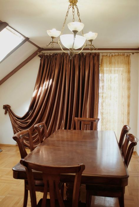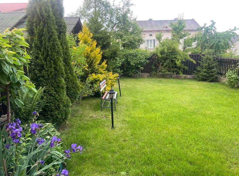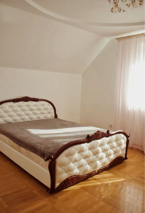 6 кімнат, великий стіл для гостей, 2 санузла, гарні кімнати з 2-х спальним ліжком, також є камін він придає затишність. Також є баня.