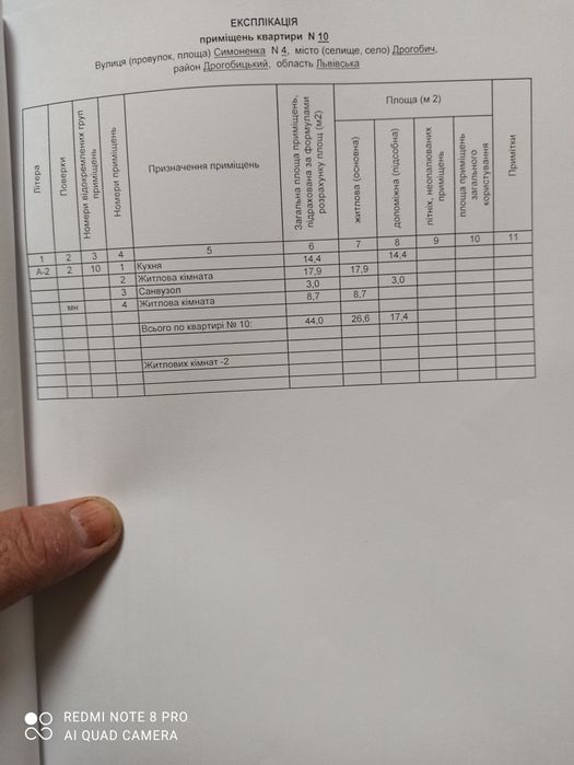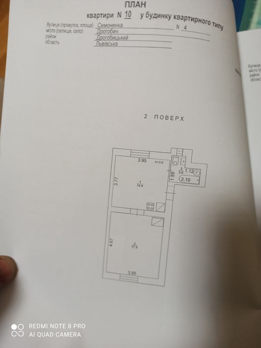 Продаж двокімнатної квартириквартири; Квартира складається з житлової кімнати площею 17,9 кв.м., кухні 14,4 кв.м., мансардної житлової кімнати площею 8,7 кв.м.. санвузла площею 3 кв.м. Загальна площа квартири 44 кв.м..