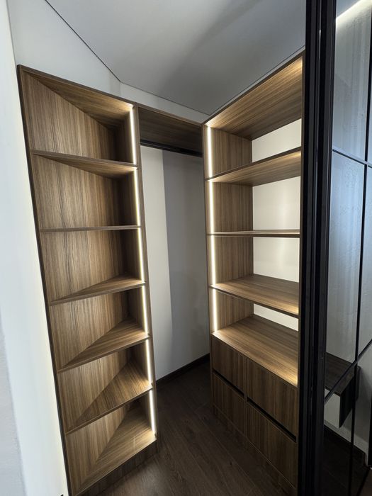 • Окрема спальня з великим зручним ліжком, підйомним механізмом та просторим гардеробом.