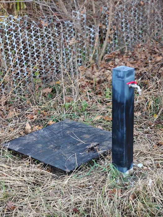 Забитий фонтан у приямку, та встановлена колонка для подачі води. Все підготовлено для встановлення насосної станції. Ділянка має першу лінію перед справжнім лісом.