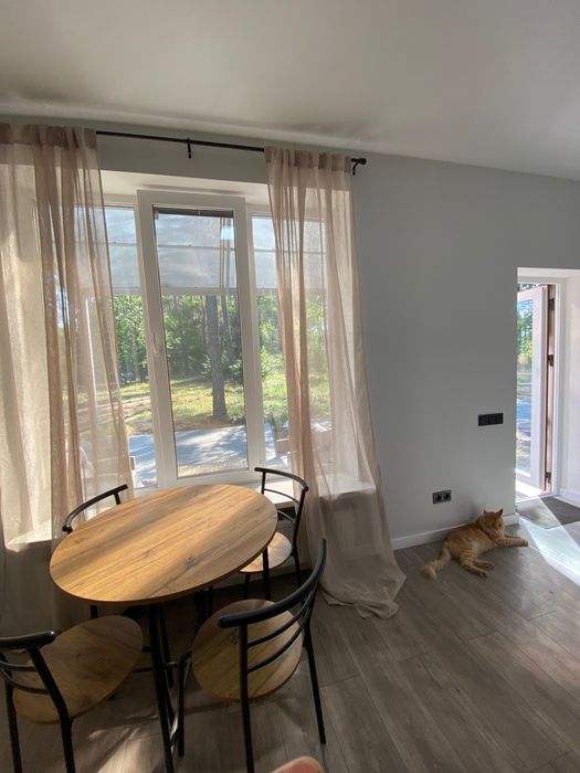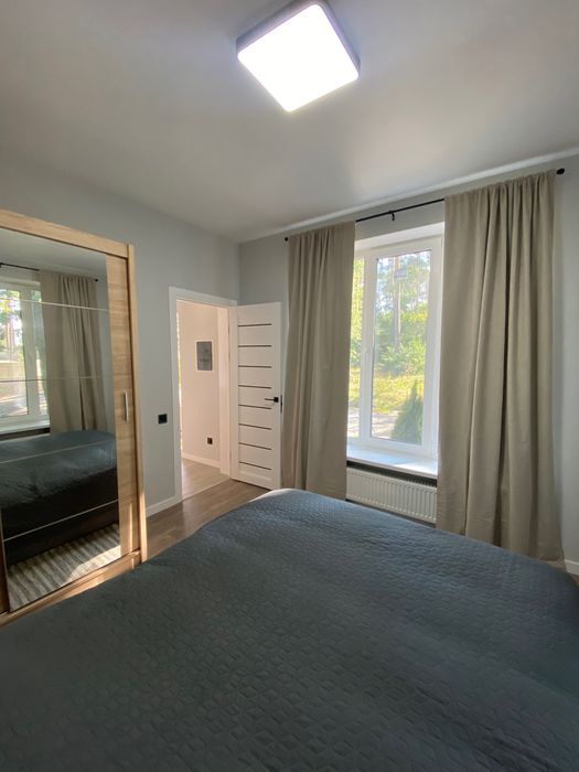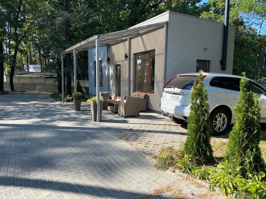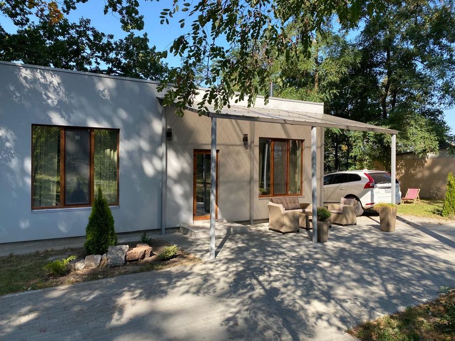 Для поціновувачів заміської тиші та свіжого повітря, ідеально для тих, хто працює дистанційно, Здається в оренду для 1-2 осіб новий, повністю мебльований та енергонезалежний будиночок (газ, електроенергія, бензиновий генератор, скважина, камін на дровах, інтернет) площею 40 кВ.м. - спальня, санвузол, кухня, літня тераса, зона для барбекю, паркомісце на закритій приватній території з можливістю зарядки електромобіля. Локація: село Гатне, Крюківщина, неподалік від «Характер парк», 5 км. від КПП Києва. Ціна еквівалентна 500 євро/міс., комунальні платежі (електроенергія, інтернет та паливо для генератора в разі потреби) оплачується окремо. Оренда мінімум на 6 місяців.