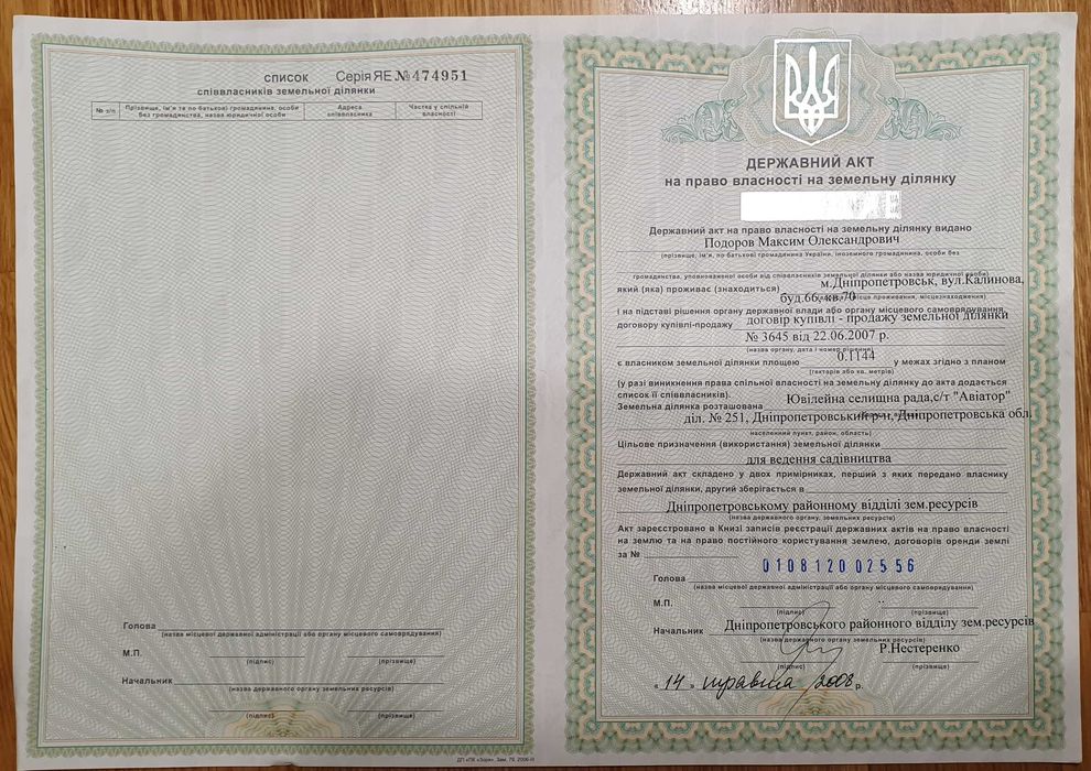 | Земельна ділянка: |