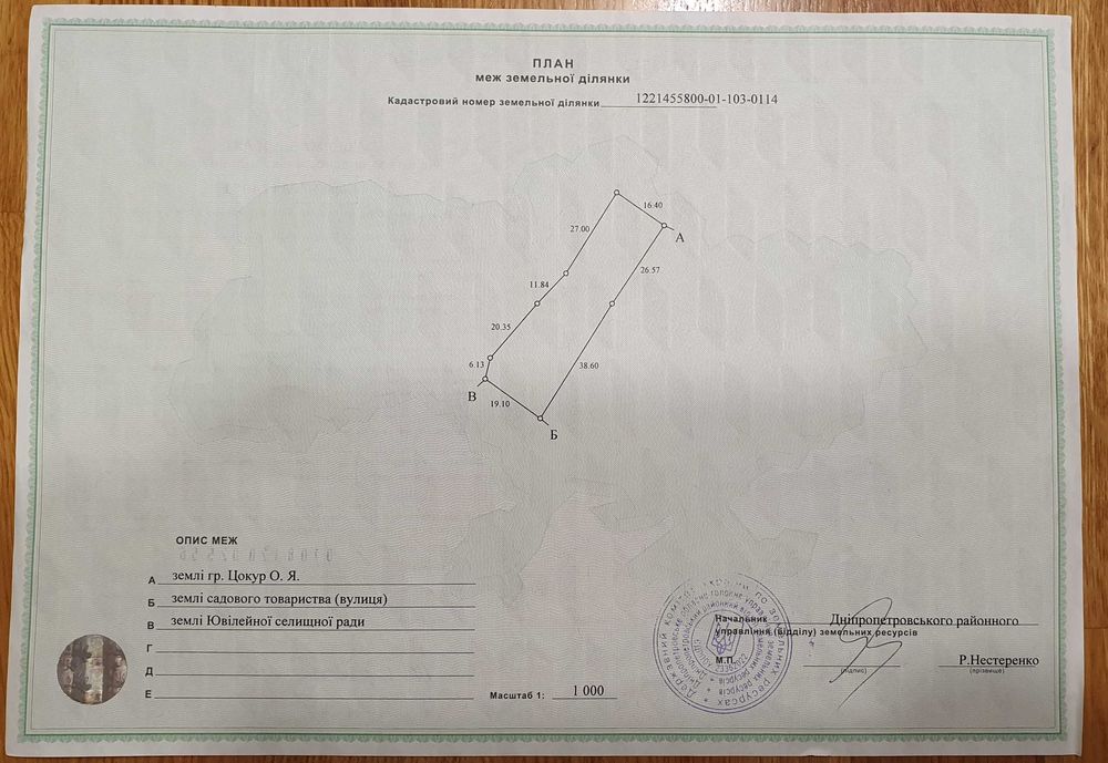 Дуже вдале розташування: тиша, чисте повітря, заїз як с Самарівки так і зі сторони Золотих Ключів. Сусід по одній стороні. Поряд с ділянкою є місце для парковки на 5-7 автомобілів.; кадастровий номер: 1221455800-01-103-0114