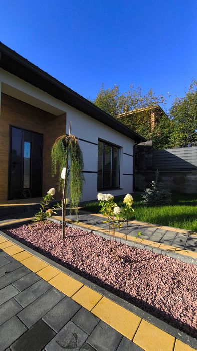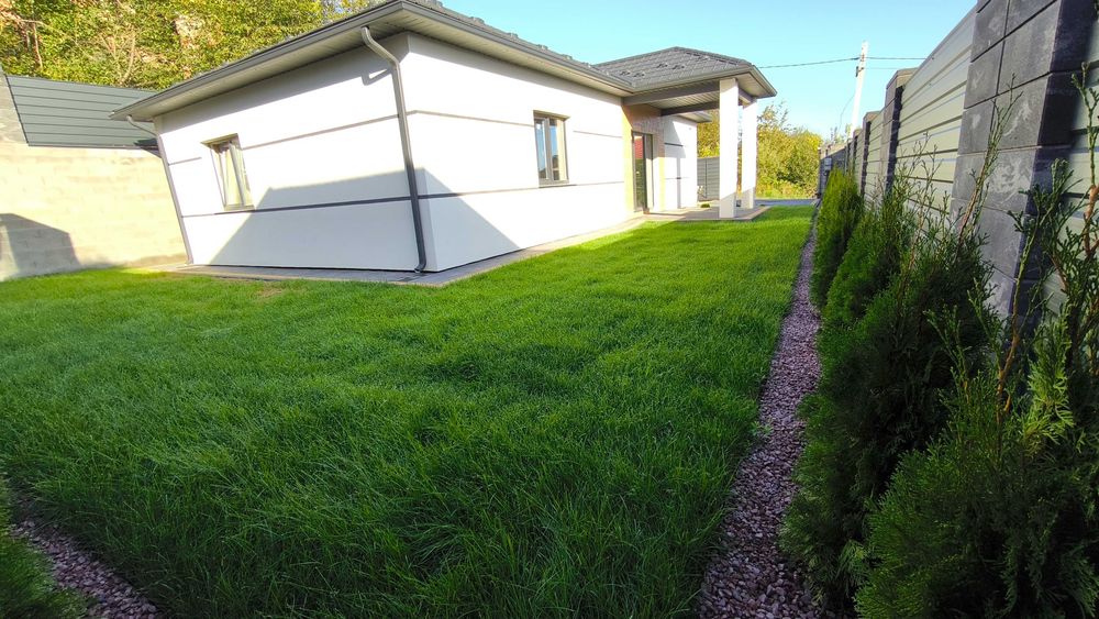 Повністю освоєна території - заїзд, газон, барбарис, туї, гортензії,модрина, ялина колюча Блу Даймонд.