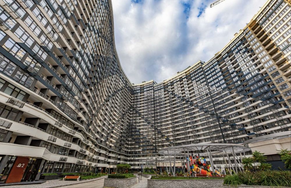 Полноценная 1-ая квартира на среднем 11 этаже расположена в сданной второй секции 45м2 кухня-студия+спальня с гардеробной, большой балкон с красивым видом на море и во двор в жк Атмосфера, евро двушка!