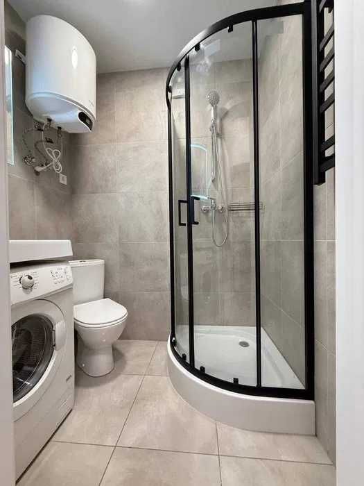 Санвузол — суміжний, обладнаний душовою кабіною, бойлером та пральною машиною.