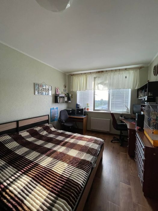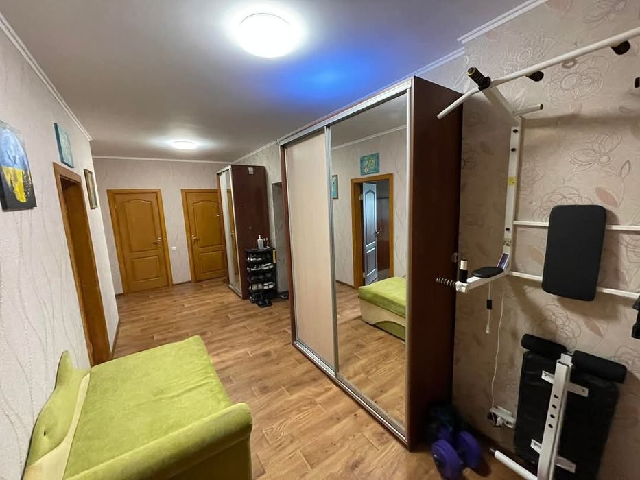 Дві великі кімнати (одна - 19 , інша - 16), простора кухня (15 м) з балконом , комора , два санвузли та величезний коридор (18 м).