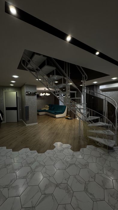 Продаётся стильная и просторная двухэтажная квартира общей площадью 115 м², расположенная на 9 этаже 10-этажного кирпичного дома.