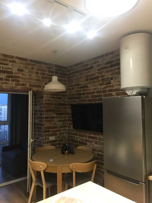 У квартирі зроблене перепланування, завдяки чому в ній є окрема світла спальня, кухня-вітальня, окрема гардеробна кімната, релакс-зона з розкладним диваном (двоспальне місце), яка знаходиться за двома стінами (тобто є велике спальне місце, яке відповідає правилу двох стін). Є закритий балкон з батареєю та розкладним диванчиком, а також відкритий балкон. В спальні ліжко 2х2 з великим пружним матрацом, там також є робоча зона. У гардеробній кімнаті дзеркало у повний зріст. В квартирі є пральна машина, сушильна машина (обидві electrolux), посудомийна машина bosch, холодильник samsung, електричні варильна поверхня та духова шафа (теж обидві electrolux), раковина та витяжка franke, смарт-телевізор samsung, бойлер gorenje, кондиціонер, штори блекаут, пожежна сигналізація та сигналізація від поліції охорони. Ремонт зроблено за власним проектом, з дизайнером, в стилі лофт. В квартирі є подушки, пледи, електрочайник та кавомашина, посуд, бокали, кухонне приладдя (каструлі, сковорідки, салатниці, дошки і багато іншого). Квартира здавалася в оренду один раз, раніше в ній жила тільки я (власниця). Опалення централізоване, є терморегулятор, індивідуальні лічильники, автоматична передача усіх показників крім води. Вартість 31 000 гривень в місяць (еквівалент 750 доларів США) плюс комунальні платежі, завдаток.