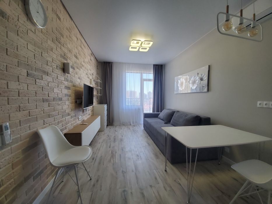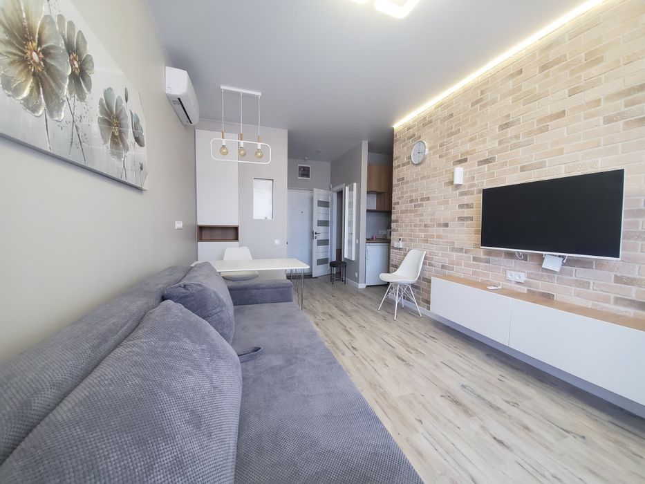 Приморський; Сдам квартиру-студию долгосрочно; Квартира-студия - отличный вариант для молодой пары или незамужних молодых людей, для матери с ребёнком. Данная квартира станет для Вас уютным гнёздышком и источником исключительно позитивных эмоций! В квартире продумано все для удобства проживания, маленькая, но комфортная кухня отдельно от комнаты, душевая с тропическим душем, высококачественная сантехника. Кондиционер, стиральная машина, микроволновка. С балкона открывается прекрасный вид на море и частный сектор. Аркадия в пешей доступности. Детская площадка во дворе, супермаркет на 1м этаже дома. Охраняемая закрытая территория, красивый холл, подземный паркинг.