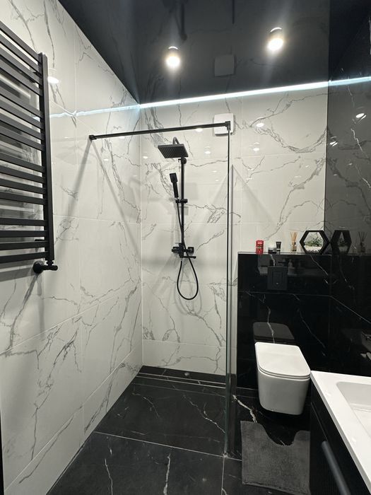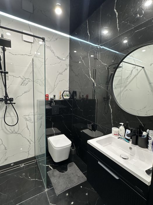 Зроблено сучасний ремонт, тепла підлога на кожну кімнату з датчиками,у всій квартирі.Є всі необхідні меблі та техніка:плита, духовка, мийка, обідній стіл.