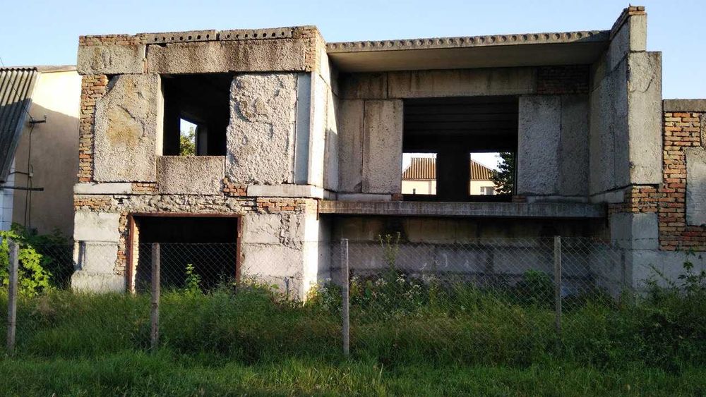 Участок 5,5 соток, с незавершённым строительством. Дом с большим и глубоким подвалом высотой 3 м, цокольным этажом высотой 3 м, верхним этажом 3м и отдельным гаражом.