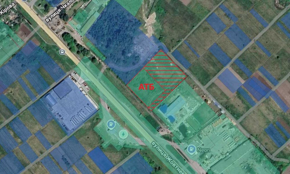 Земельна ділянка для комерції, АЗС (заправка); Продається земельна ділянка, поруч АТБ. Друга лінія із спільним заїздом. Площа 0,4 га. Приватна власність. Цільове призначення: 03.07 для будівництва та обслуговування будівель торгівлі. Наявна геодезія. На території невелика будівля.