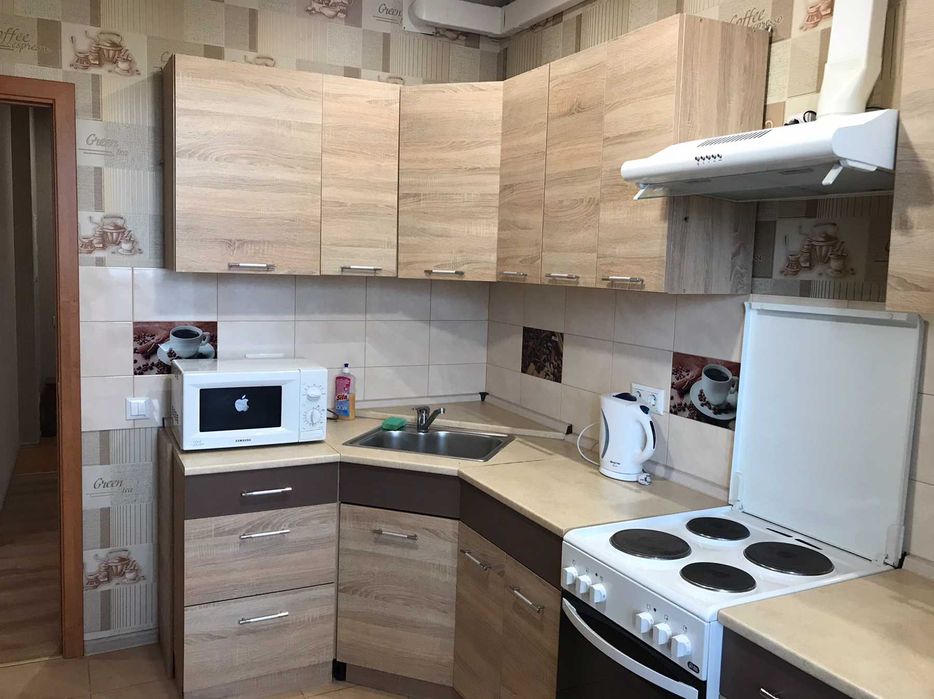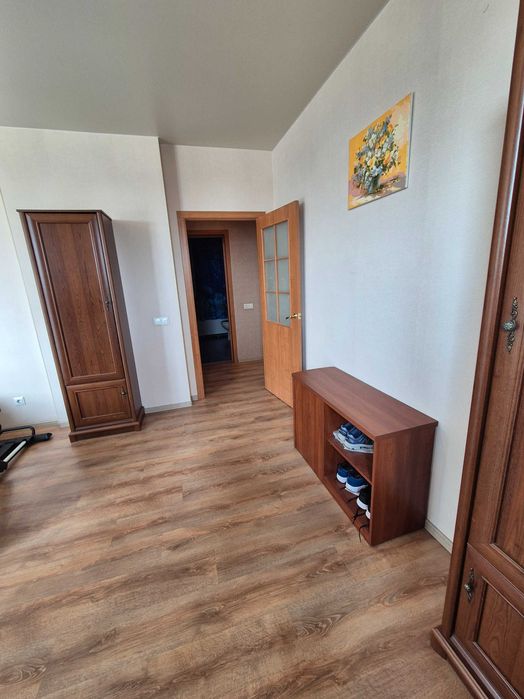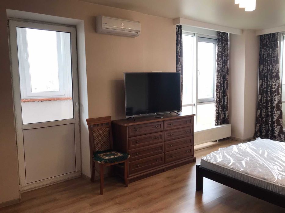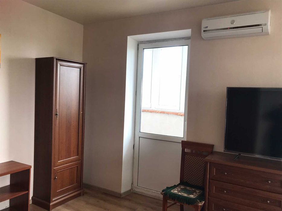 В квартире всё есть – шкафы, стиралка, кондиционер, холодильник Now Frost, SMART-TV, кухня, кровать, оптоволокно.
