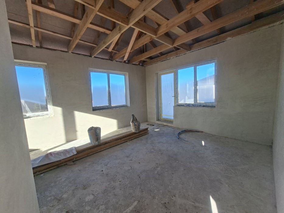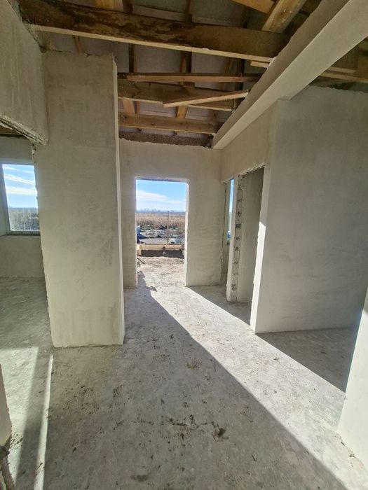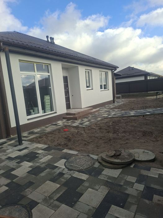 Продаж готового будинку; Продаж готового будинку в котеджному містечку закритого типу. Кутова ділянка, асфальтований підїзд до будинку, в будинку вже змотована водяна тепла підлога і залита стяжка, відштукатурені кімнати гіпсовою штукамуркою, санвузол вапняковою. Ділянка кутова 5,11 соток змонтовані септик з переливом, водоприймачі з обох боків, пробита свердловина. Будинок 68 м2 + крита тераса 17 м2.