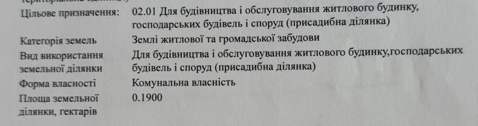 | Земельна ділянка: |
