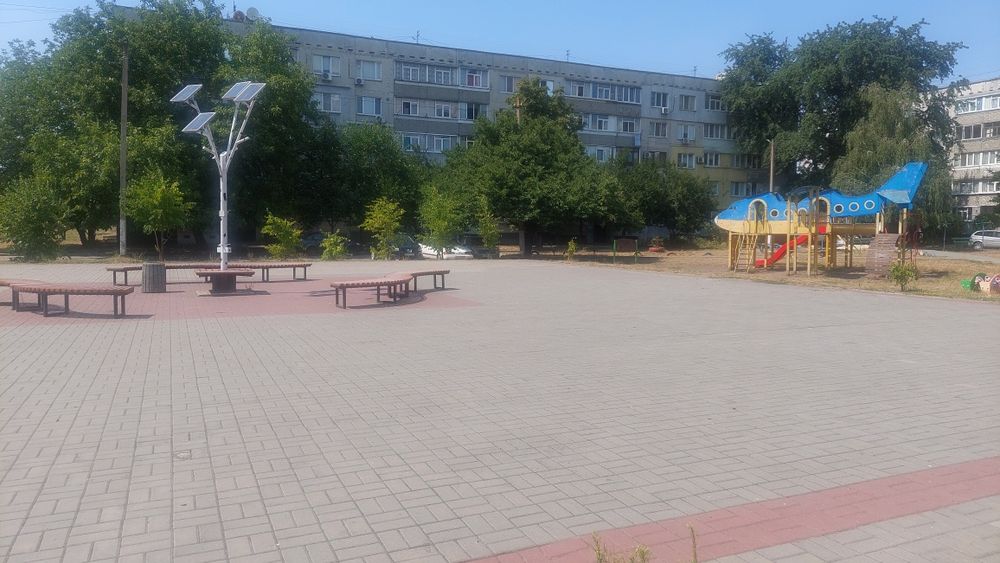 Поруч з будинком 2 дитячі майданчика, дитячий садочок у дворі, в 5 хв. ходу школа #5 з облаштованним бомбосховищем, у дворі при виході з під'їзду мінімаркет.