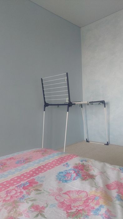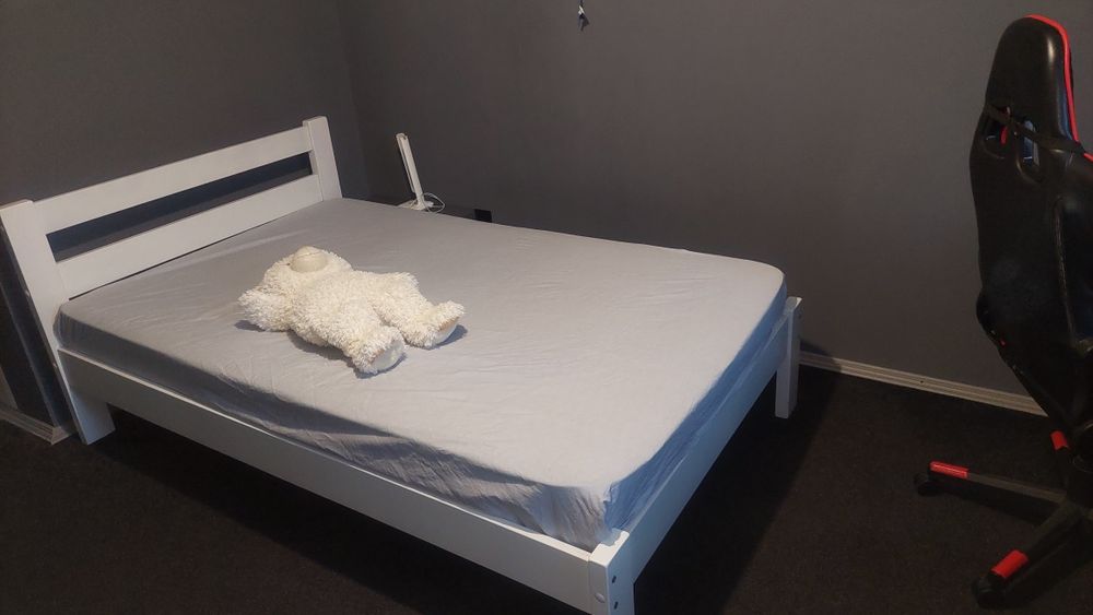2) СПАЛЬНЯ: ковролін преміум класса молочного кольору, кровать King Size з натурального закарпатського дерева у мінімалістичному стилі, матрас, якісна зручна сушарка для речей нова, гладильна доска, утюг Philips не новий, стіл письмовий.