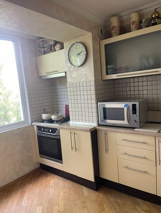 Святошинський; Оренда квартири,Здам квартиру,Двушка/студія Святошино бул. Жуля Верна; Здається квартира в чудовому стані. Повністю оснащена меблями та технікою. Квартира студія, повноцінна кімната та велика кухня, з шкіряним диваном та столовими меблями. Ванна кімната з великою, сучасною душовою кабіною. В квартирі є всі меблі та техніка для повноцінного проживання (холодильник, бойлер, пральна машина, телевізор, кондиціонер,мікрохвильова піч, газова плита та духовка).Новий гарний,зручний матрас. Квартира знаходиться на 5 поверсі з надійним дверима, та камерою при дзвінку. Квартира після професійного прибирання. Невеликі комунальні платежі. Дуже зручне розташування, все в першійдоступності. Зупинка громадського транспорту, прям біля будинку. Трамвай 3-ка в пʼяті хвилинах ходьби. Школи,садочки,парки, магазини, ринок все під рукою.Здається від власника. Святошинский район.