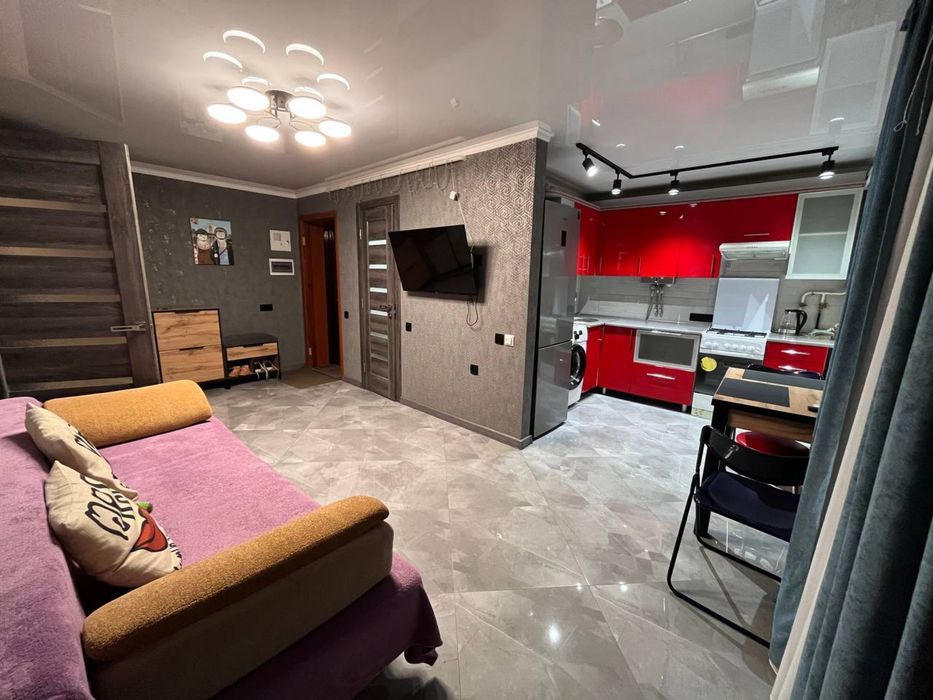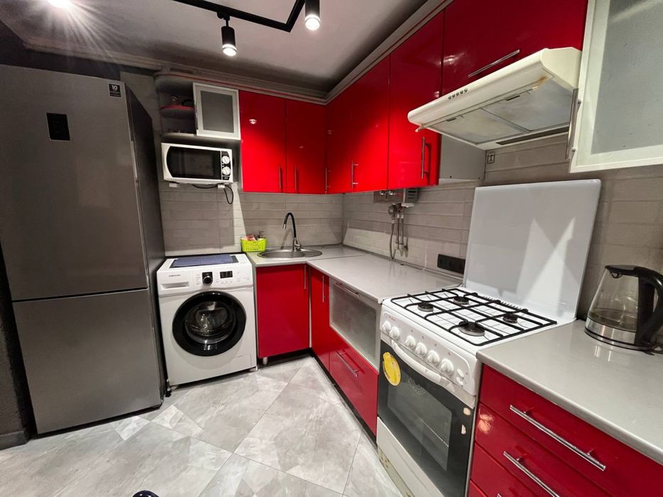 Квартира мебльована та обладнана необхідною технікою (пральна машина, холодильник, мікрохвильова піч, плита, кондиціонер, телевізор)