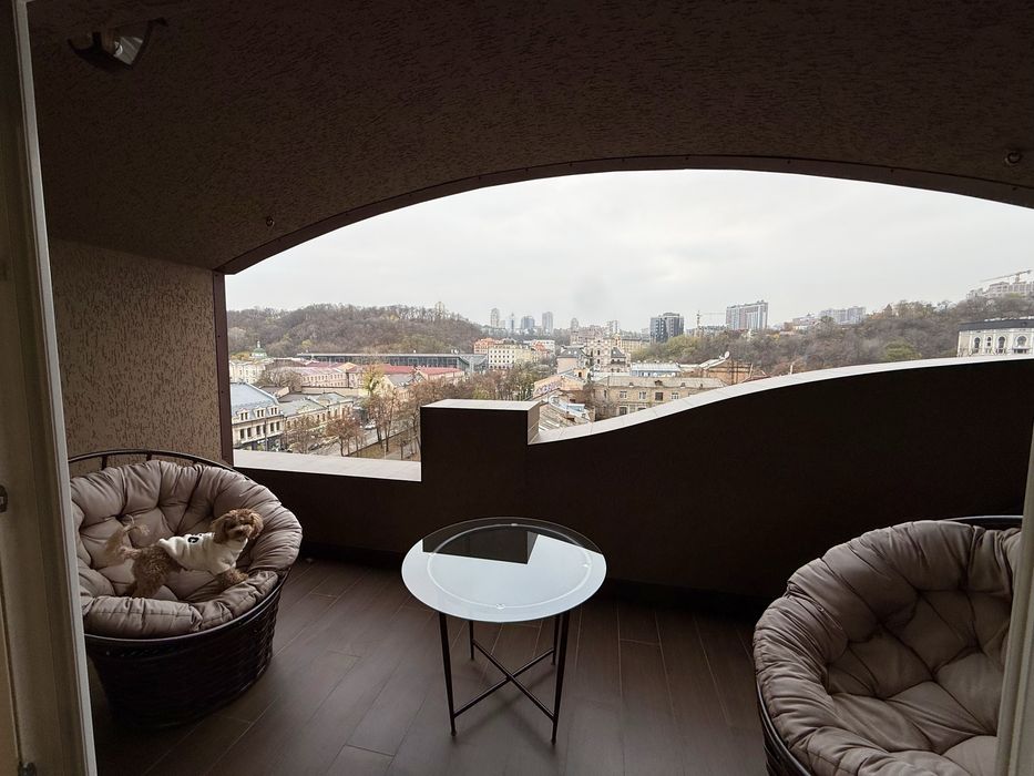 Вікна виходять на парк та весь Поділ як на долоні.