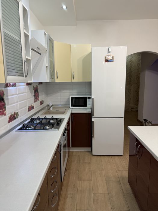 • повністю обладнана кухня(холодильник, плита, духовка,мікрохвильова піч)