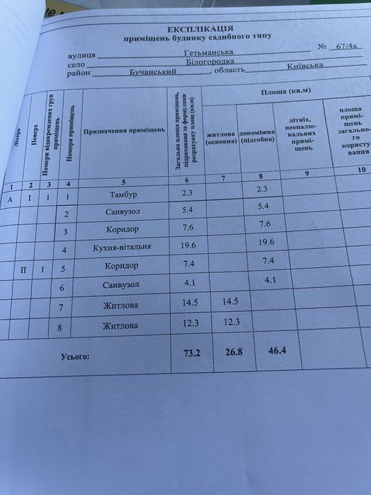 Таунхаус 73 кв.м. дом с двориком ЖК Амстердам.; До вашої уваги добудований, вже готовий до ремонту будинок-таунхаус (вихід в одну сторону) площею 73,2 м2 із власною ділянкою 95 м2 в центрі Білогородки, Києво-Святошинський р-н,