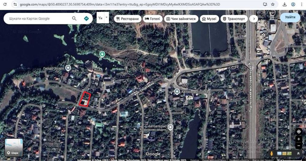 Дніпровський; Кутова ділянка, ділиться на три, Спортивна 12, Радужний, "Приозерне".; Будинок 153 метрів під знос. Ділянка углова 677 метрів, ділиться на дві-три. Три фази 5 кВт. Скважина(100 труба) 35 метрів, вода технічна, але багато. Поруч Подільський мостовий перехід, 500 метрів зупинка громадьського транспорту. На території кооперативу магазин, пляж на Десенку, лодочний причал, дитячий майданчик, зона відпочинку біля озера.