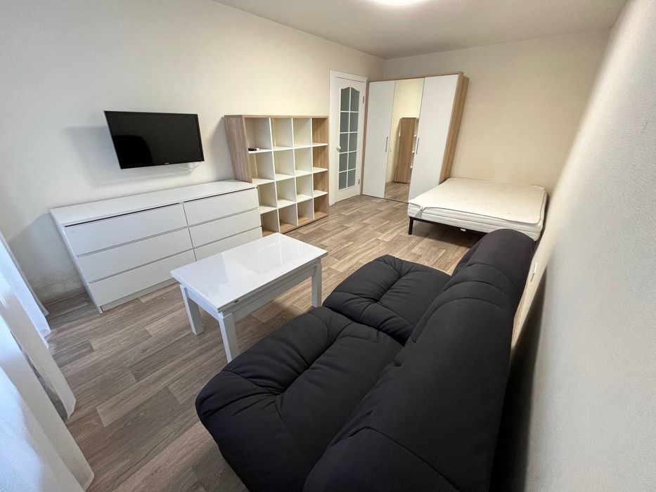 В квартире есть все для комфортного проживания: Холодильник, стиральная машина, микроволновка, телевизор,ванная,шкаф,камод, гардероб, хорошая коровоть с удобным матрасом,диван,бойлер пылесос , кухонная посуда (сковорода , кастрюли, чайник, тарелки,ложки итд.)