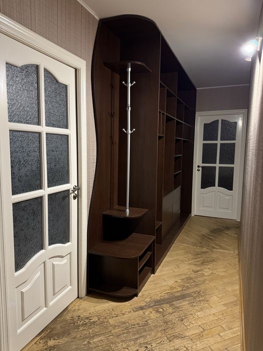 Святошинський; Оренда трикімнатноі квартири, Борщагівка, район ринку Колібріс; Здається в оренду трикімнатна квартира на 3 поверсі 9-поверхового будинку на Борщагівці. Поруч школа, дитячий садок, ринок, кінотеатр, супермаркети, кафе, лісопаркові зони, зупинки усіх видів транспорту (до метро 10 хвилин на маршрутці або тролейбусі). Є холодильник, газова плита, електродуховка, пральна машина, бойлер, встановлені лічильники на холодну/гарячу воду. Кімнати роздільні, є балкон і лоджія, великий передпокій з двома несучими стінами, а також тамбур на дві квартири, відгороджений від підʼїзду металевою стіною, обшитою вагонкою (можна використовувати як міні-укриття під час тривог).