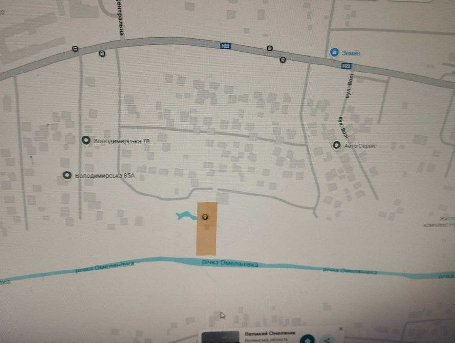 Земельна ділянка під забудову с. Великий Омеляник; Земельна ділянка загальною площею 0,2872 га. + санітарна зона до річки 10 соток знаходиться в с. Великий Омеляник ( по факту в м. Луцьк) 300 метрів від траси Луцьк - Володимир .