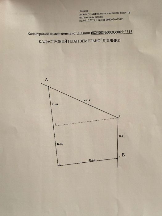 Кадастровий номер: 68*****600:03:005:2315