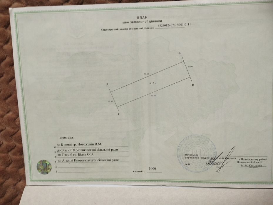 | Земельна ділянка: |