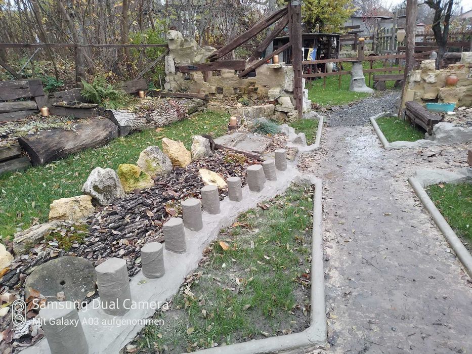 Земля доглянута, багато господарських побудов, молодий сад і виноградник.