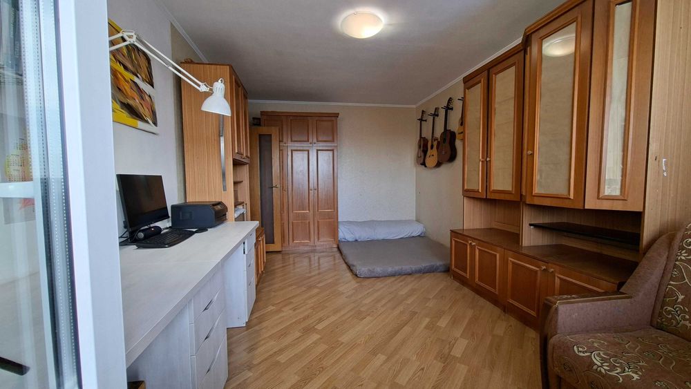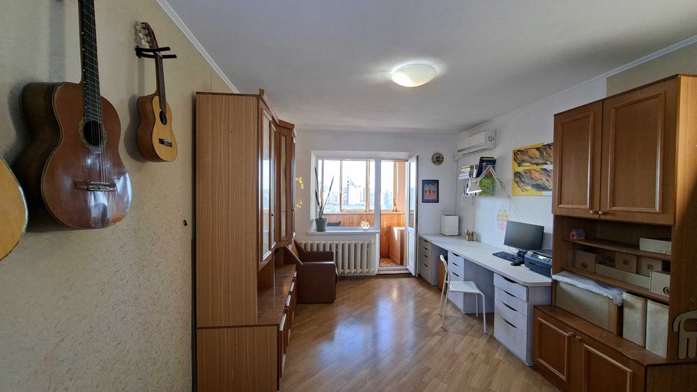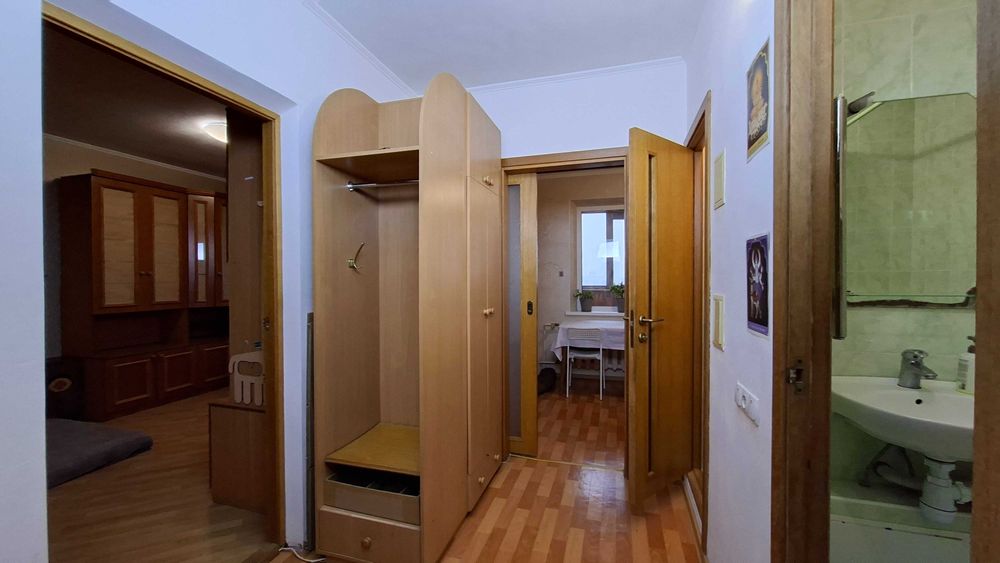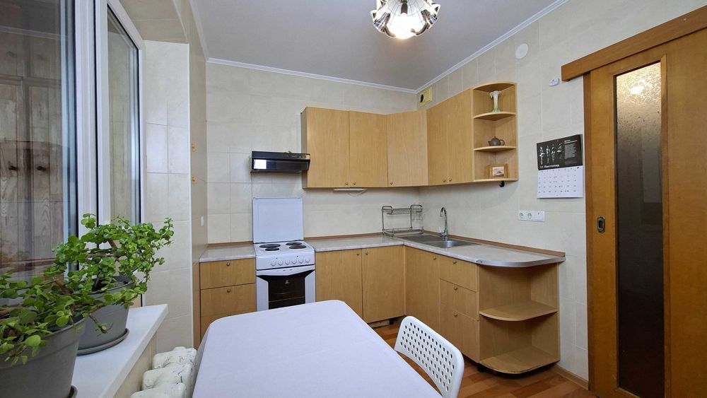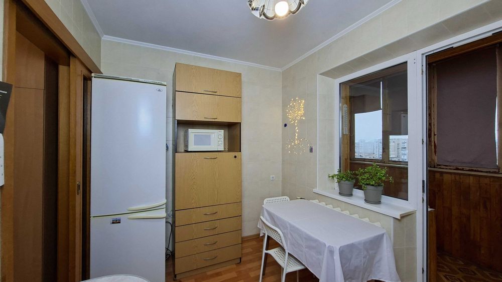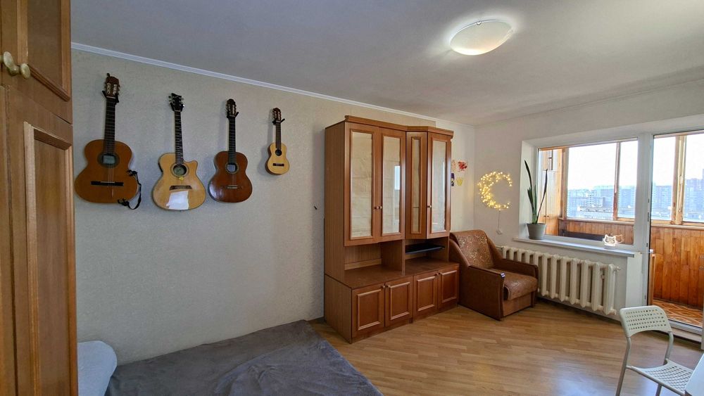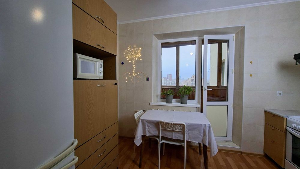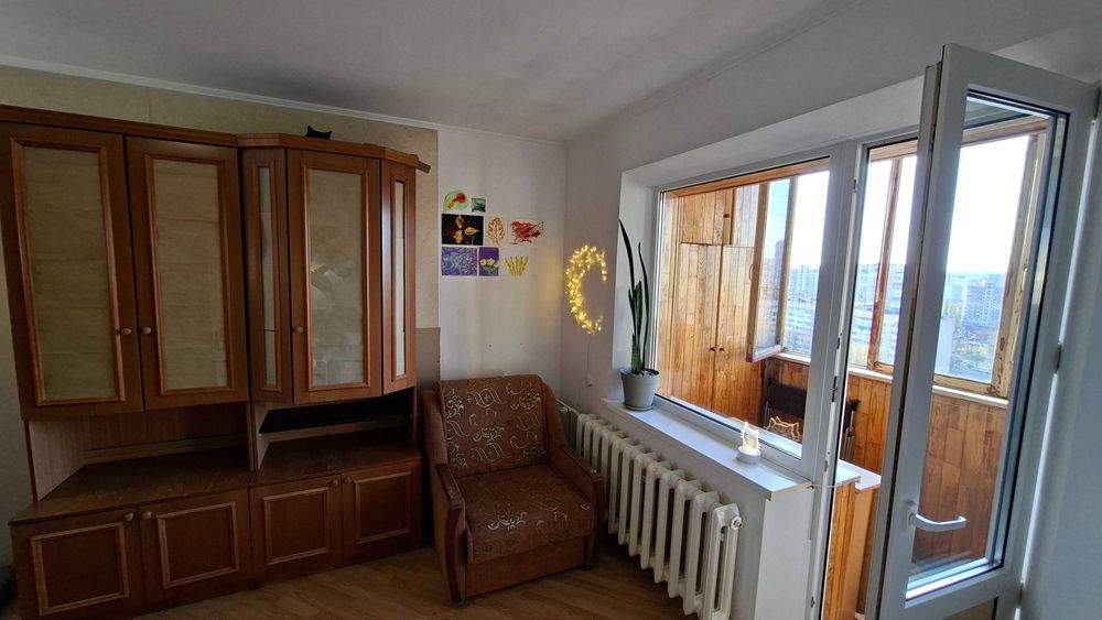 Дарницький; квартира 1к 38.9м 16пов ялтинська; Продається квартира з просторою кухнею і великою лоджією, панорамним видом на Київ. 2 вихода на лоджію - з кухні і з кімнати. Приємні сусіди, відсутні серйозні конфлікти та кримінал поки я тут живу (10років). Доглянутий та чистий підїзд і двір, квітучі клумби, є місця для паркування. Двері на поверх на замку. Квартира не потребує утеплення через її розташування - не кутова. Єдина стіна що межує з вулицею це лоджія. Квартира знаходиться на останньому житловому поверсі, а над ним є технічний поверх, що є додатковим утепленням. Сонячна сторона. Порівняно низька плата за комунальні послуги. Проводка замінена на якісну приблизно в 2005 році. Дуже рівно і надійно покладена плитка до стелі в туалеті ванні і кухні приблизно в 2008, нічого ніде не відпадало. Хороша сантехніка - робили щоб жити. Коридор і кухня - лінолеум, кімната - ламінат. Вирівняні стіни з фінальною штукатуркою в кімнаті і коридорі.