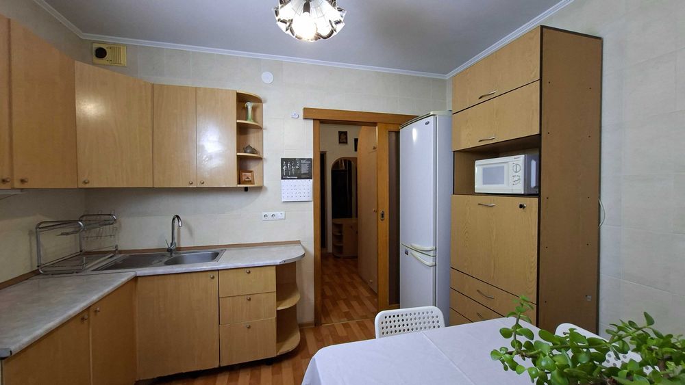 В кухні шафи, холодильник, стіл лишаються покупцю. В ванній кімнаті і туалеті шафки лишаються покупцю. В лоджії - тумба для постілі і стіл - лишаються покупцю. За бажанням покупця можу забрати всі меблі.