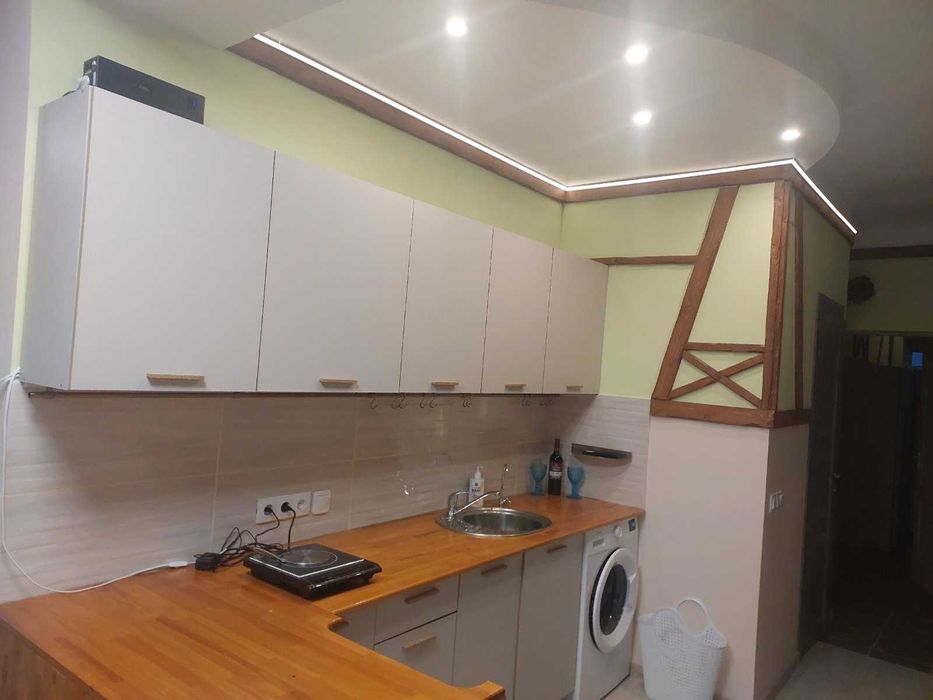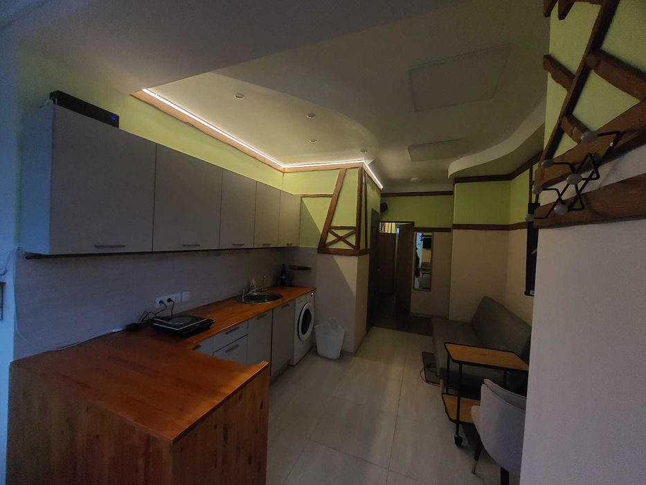 Шевченківський; Оренда 2-кімн. в самому центрі Києва; Довгострокова оренда квартири 25,5 кв.м. Перший поверх, окремий вхід з вулиці, спальня + студія-вітальня. Свіжий дизайнерський ремонт, перша здача. Побутова техніка, бойлер. Фільтр питної води, зворотній осмос. Автономне освітлення від звичайного Power-Bank на випадок блекауту.