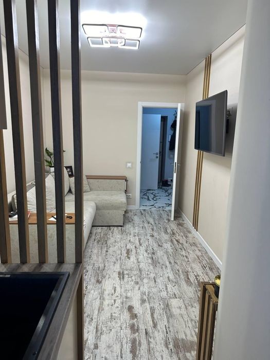 Складається з 2х кімнат,окрема гардеробна,коридор,ванна х туалетом,кухня.
