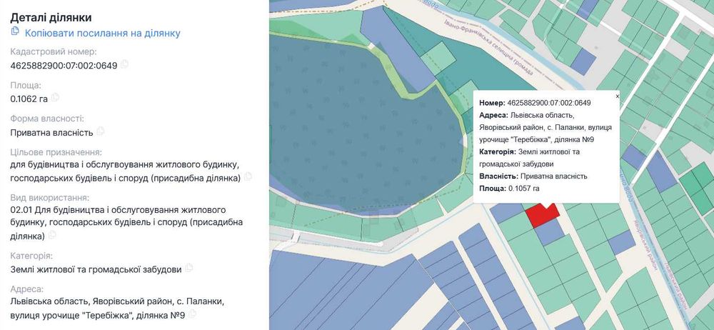 Продам земельну ділянку під забудову; Пропонується до продажу земельна ділянка площею 0.1062 га, розташована у мальовничому та спокійному місці — с. Паланки, урочище "Теребіжка", ділянка №9.