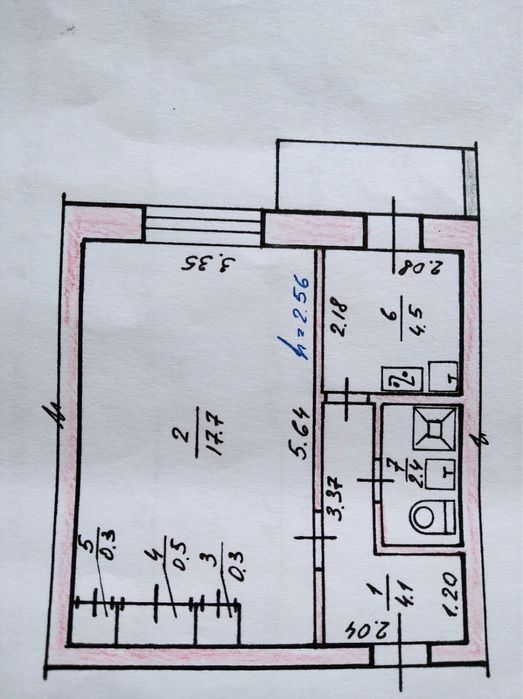 32кв, простора кімната 18кВ, кухня 6 кВ.