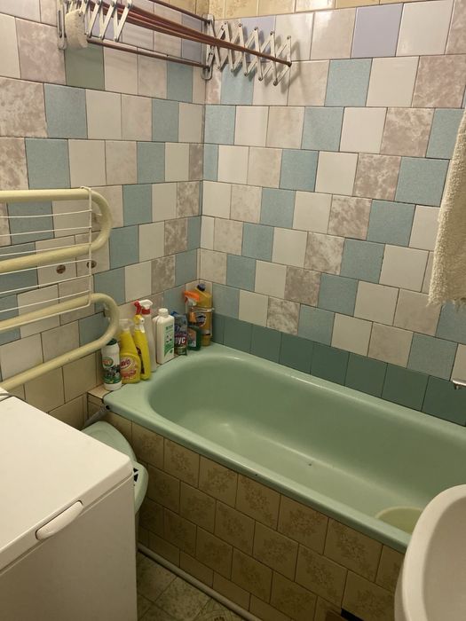 Присутня вся побутова техніка ( Холодильник, пральна машина, плита, мікрохвильова піч, електрочайник) Є 2 спальні ліжка,шафа, комод, дошка для прасування .