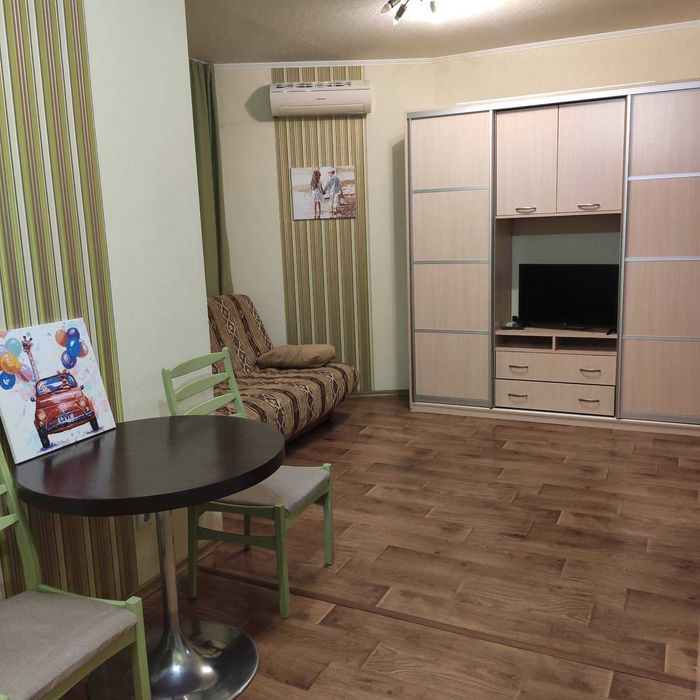 Деснянський; Здам 1к квартиру на Троєщині; Квартира-студія на новій Троєщині, вул. Милославська, 2. Доглянута чиста та тепла квартира з заскленою лоджією. Мебльована, диван Венетто має зручний ортопедичний матрац та три положення для відпочинку та сну. Оснащена тепло- та водолічильниками - можна економити на комунальних послугах.