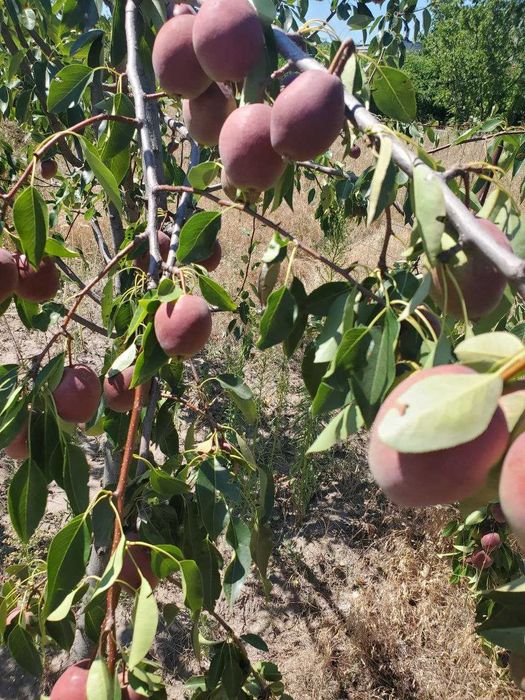 Дерева: яблуні, алича, абрикос, груша, вишня, горіх. Виноградник, ожина.